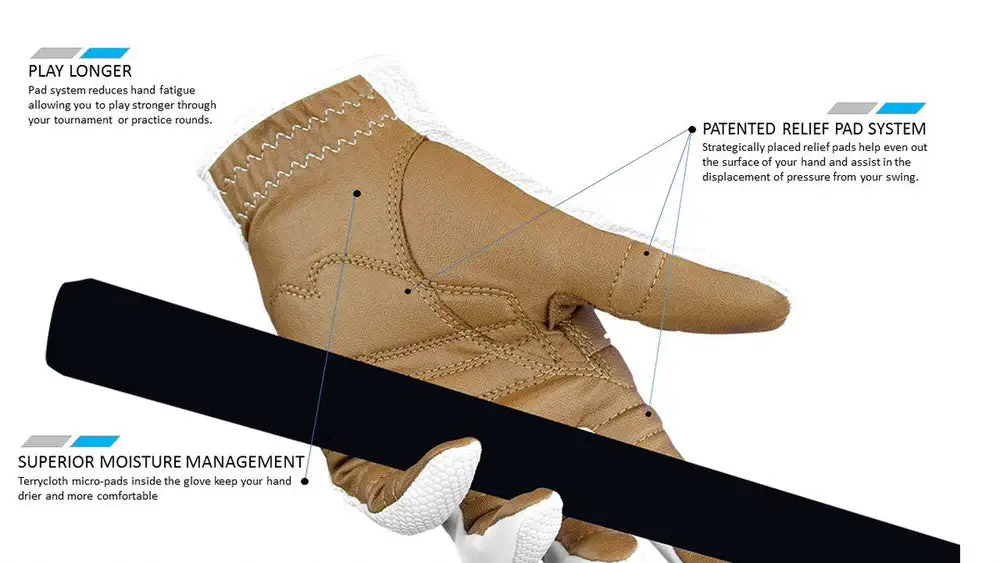 Many golfers remove their glove when retrieving the putter from the bag. This is a hassle, and it quickly wears down their gloves. With its patented relief pad system, web and motion zones, and improved moisture management, keep the RelaxGrip 2.0 on your hand during the entire game.