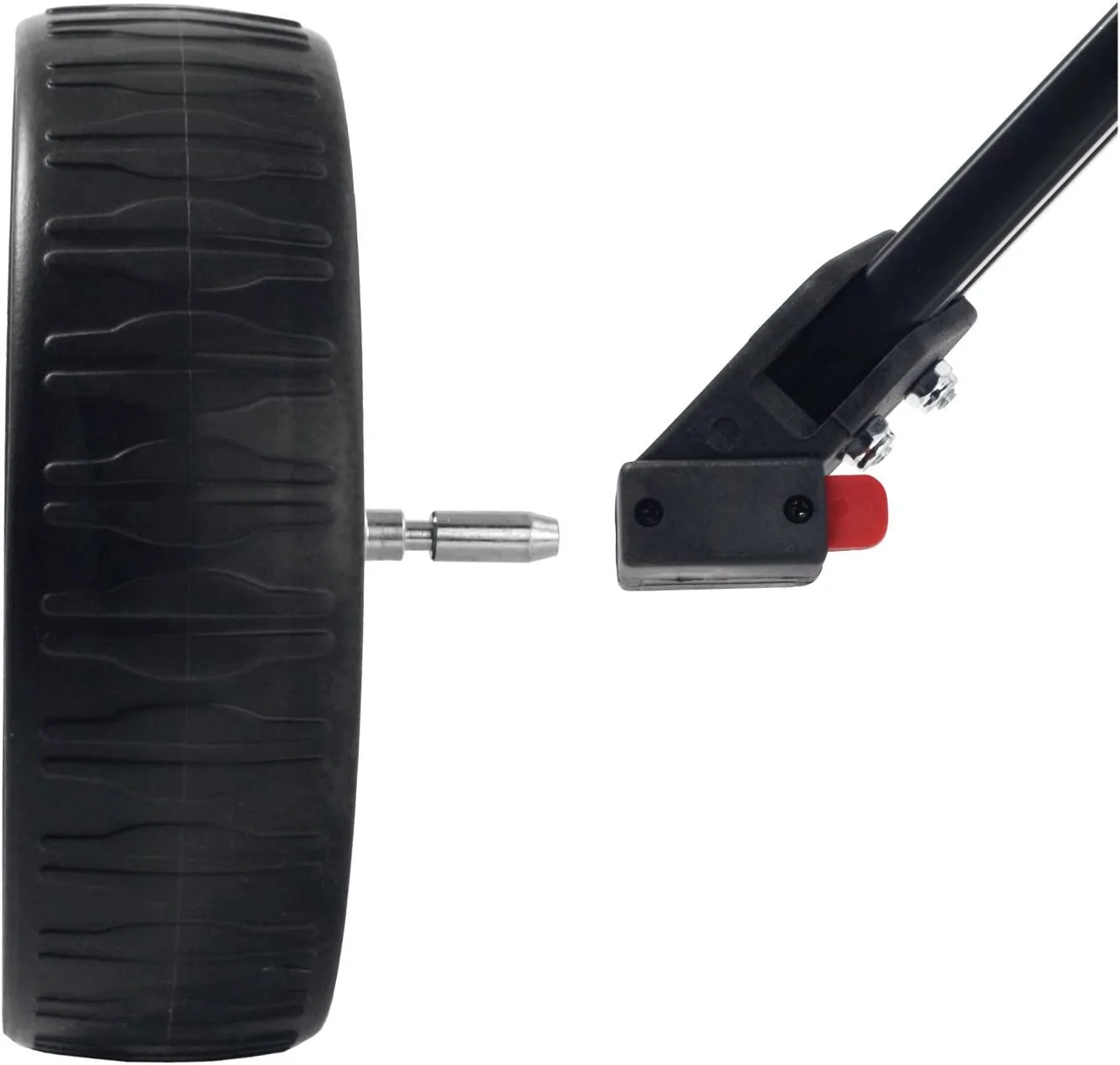 - Easy-on, push button, quick release, wheels and interlocking double-strut system for added strength